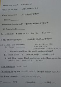 テキストやイラストを見ながら、先生の発音に合わせて英文を読んでみたり、