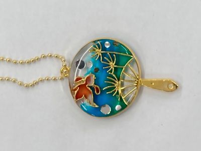 うちわの模様は、和柄な雰囲気です🏔🐟🌸