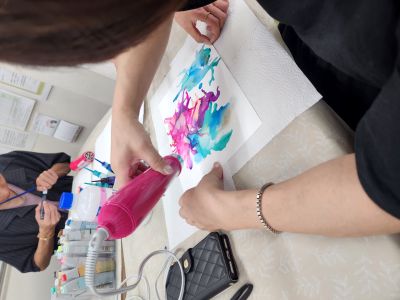 みなさん初めての挑戦でしたが、インクとアルコールとドライヤーをうまく使い独特なインクアートの世界が出来てきました✨