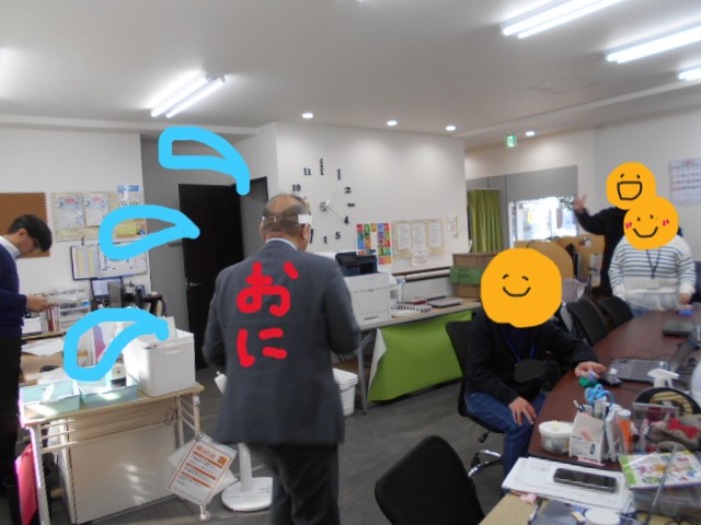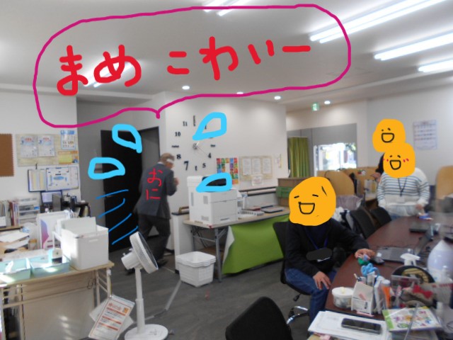 豆まき終了後、 S職員は 何事もなかったかのように 仕事に戻っていきました