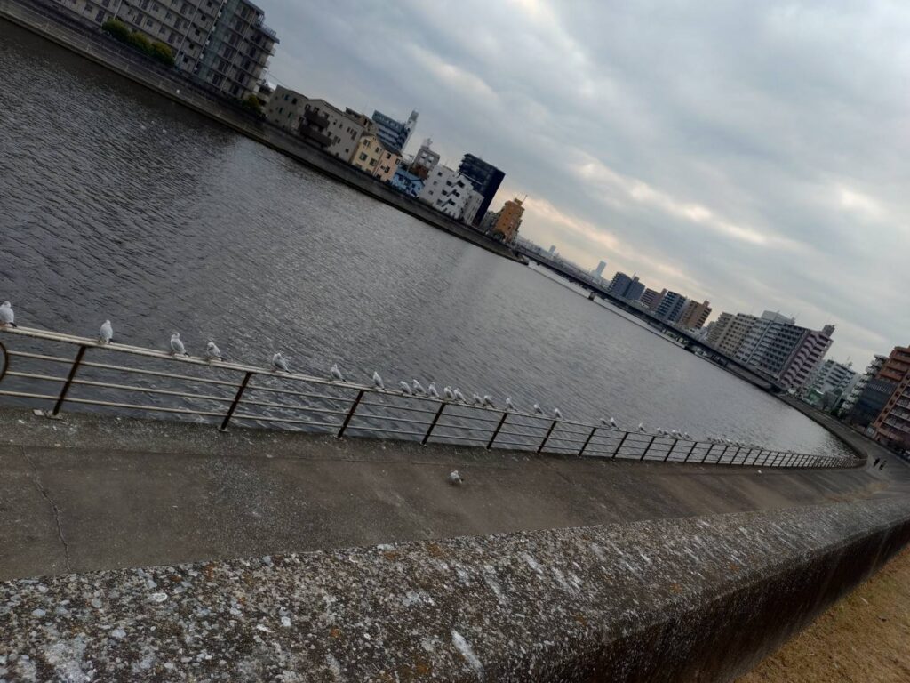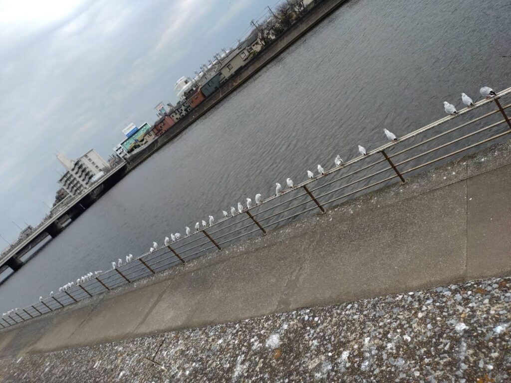 途中でユリカモメなどのバードウォッチングも行いました。 鶴見川では他にも「オオバン」「スズガモ」などの鳥が水に潜る様子も見られました。